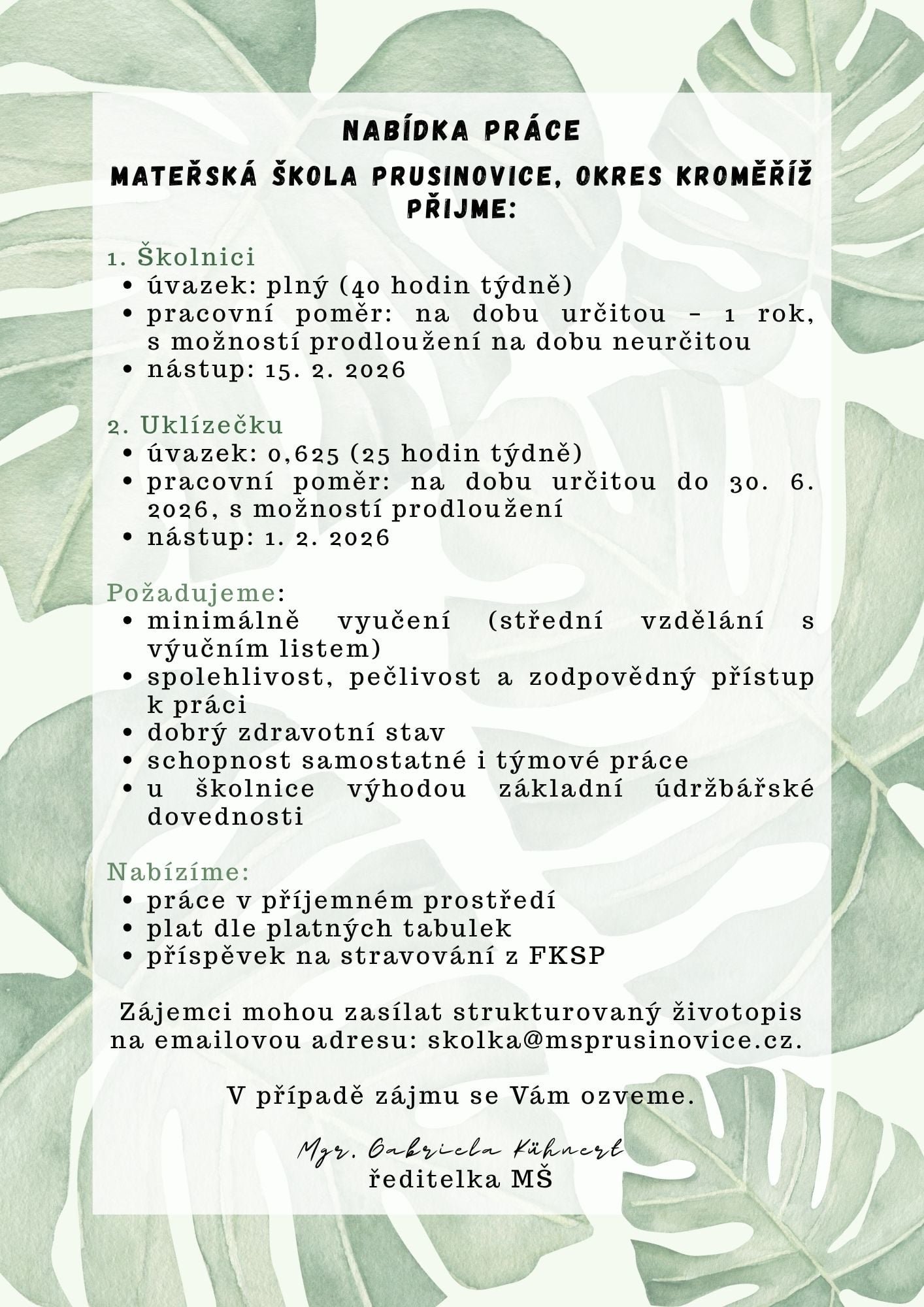 Úvodní strana / Aktuality a média / Aktuality / Nabídka prace